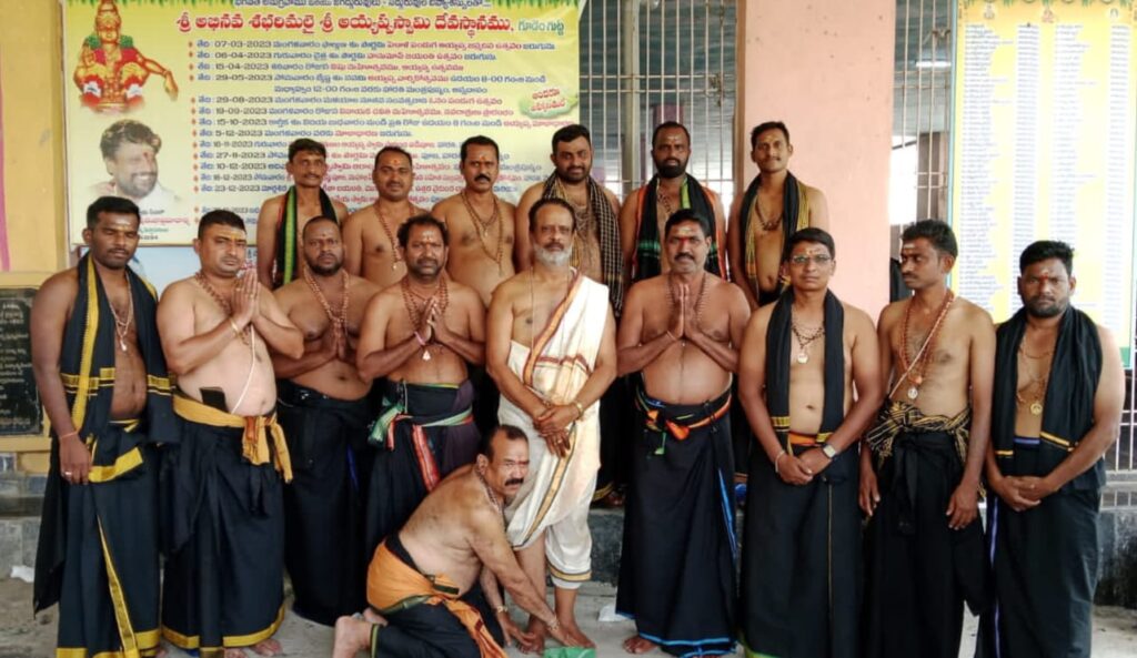 శ్రీరాంపూర్ కాలనీకి చెందిన అయ్యప్ప భక్తులు బుధవారం అయ్యప్ప స్వామి మాలధారణ చేశారు. శ్రీరాంపూర్ ఏరియా అఖిల భారతీయ అయ్యప్ప ధర్మ ప్రచార సభ అధ్యక్షుడు బొడ్డు లక్ష్మణ్, ప్రధాన కార్యదర్శి బాస్కర్ల రాజేశం, ఉపాధ్యక్షుడు గుడ్డేటి రామలింగంల ఆధ్వర్యంలో అయ్యప్ప భక్తులు గోదావరి పుణ్య స్నానం ఆచరించి, అయ్యప్ప దేవాలయంలో గురు స్వామి చక్రవర్తుల పురుషోత్తమాచార్యలుచే అయ్యప్ప మాల ధరించారు. ఈ సందర్భంగా శ్రీరాంపూర్ ఏరియా అఖిల భారతీయ అయ్యప్ప ధర్మ ప్రచార సభ అధ్యక్షుడు మాట్లాడుతూ అయ్యప్ప భక్తులకు దీక్ష నియమాలు ఉపదేశించి నిష్టగా 41 రోజులు అయ్యప్ప స్వామి పూజలు చేసి ఇరుముడి దాల్చి శబరిమల వెళ్లాలని కోరారు. అయ్యప్ప స్వామి దీక్షతో భక్తులకు ఏకాగ్రత పెరుగుతుందన్నారు. డిసెంబర్ 8న గురువారం శ్రీరాంపూర్ కాలనీ ప్రగతి స్టేడియంలో కేరళకు చెందిన సంజీవ నంబూద్రి గురుస్వామిచే అయ్యప్ప స్వాముల సామూహిక మహా పడిపూజ, అయ్యప్ప స్వాముల మహా సంగమం, అగ్ని గుండాల ప్రవేశం నిర్వహించడం జరుగుతుందని తెలిపారు. ఈ కార్యక్రమంలో కార్యదర్శి వంగ శ్రీనివాస్, సీహెచ్ సదానందం, వేణు, కొండల్ రెడ్డి, శ్రావణ్, బన్నీ, శేఖర్, బజ్జూరి, సురెందర్, రమేష్, చందర్, పప్పు, అశోక్ తదితరులు పాల్గొన్నారు.