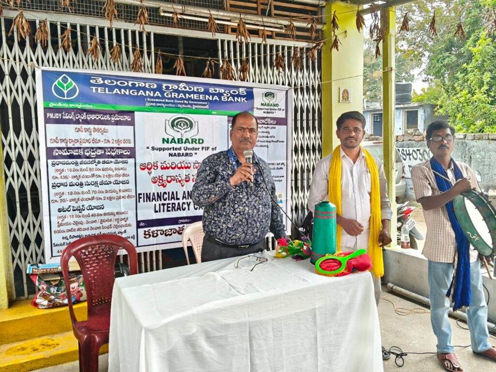 నస్పూర్, ఆర్.కె న్యూస్: పట్టణంలోని రామ్ నగర్లో తెలంగాణ గ్రామీణ బ్యాంకు (సీతారాంపల్లి శాఖ) ఆధ్వర్యంలో శనివారం ఆర్థిక, డిజిటల్ అక్షరాస్యత కార్యక్రమం నిర్వహించారు. ఈ సందర్భంగా బ్యాంకు మేనేజర్ నరసింహ స్వామి ఖాతాదారులకు పలు ప్రభుత్వ బీమా పథకాలు, డిజిటల్ లావాదేవీల భద్రతపై అవగాహన కల్పించారు. ప్రధానమంత్రి సురక్ష బీమా యోజన పథకంలో 18-70 ఏళ్ల వారు ఏడాదికి రూ.20 చెల్లిస్తే, ప్రమాదవశాత్తు మరణించినా లేదా అంగవైకల్యం సంభవించినా రూ.2 లక్షల బీమా అందుతుందని, జీవనజ్యోతి బీమా యోజన పథకంలో 18-50 ఏళ్ల వారు ఏడాదికి రూ.436 చెల్లించడం ద్వారా రూ. 2 లక్షల జీవిత బీమా లభిస్తుందని, అటల్ పెన్షన్ యోజన పథకంలో 18-40 ఏళ్ల లోపు వారు చేరితే, 60 ఏళ్ల తర్వాత నెలకు రూ.1000 నుండి రూ.5000 వరకు పెన్షన్ పొందవచ్చని, చందాదారుడి మరణానంతరం భార్యకు, ఆ తర్వాత పిల్లలకు కూడా ఆర్థిక వెసులుబాటు ఉంటుందని పేర్కొన్నారు. బ్యాంకు ఏటీఎం కార్డు కలిగి ఉన్నవారికి ప్రమాదవశాత్తు మరణిస్తే రూ.2 లక్షల వరకు బీమా సౌకర్యం ఉంటుందని తెలిపారు. డిజిటల్ లావాదేవీలు చేసేటప్పుడు అప్రమత్తంగా ఉండాలని, ఎవరికీ పాస్వర్డ్లు, ఓటీపీలు చెప్పకూడదని మేనేజర్ సూచించారు. అపరిచిత ఫోన్ కాల్స్, అనుమానాస్పద లింకులను నమ్మవద్దని కోరారు. అనంతరం రమేష్ కల్చరల్ అసోసియేషన్ కళాకారులు పాటలు, మ్యాజిక్ షో ద్వారా బ్యాంకింగ్ సేవలపై ప్రజలకు అవగాహన కల్పించారు. ఈ కార్యక్రమంలో శ్రీదేవి, సుధ, పరిమళ, సునీత, అంజయ్య, సత్తన్న, ఖాతాదారులు తదితరులు పాల్గొన్నారు.