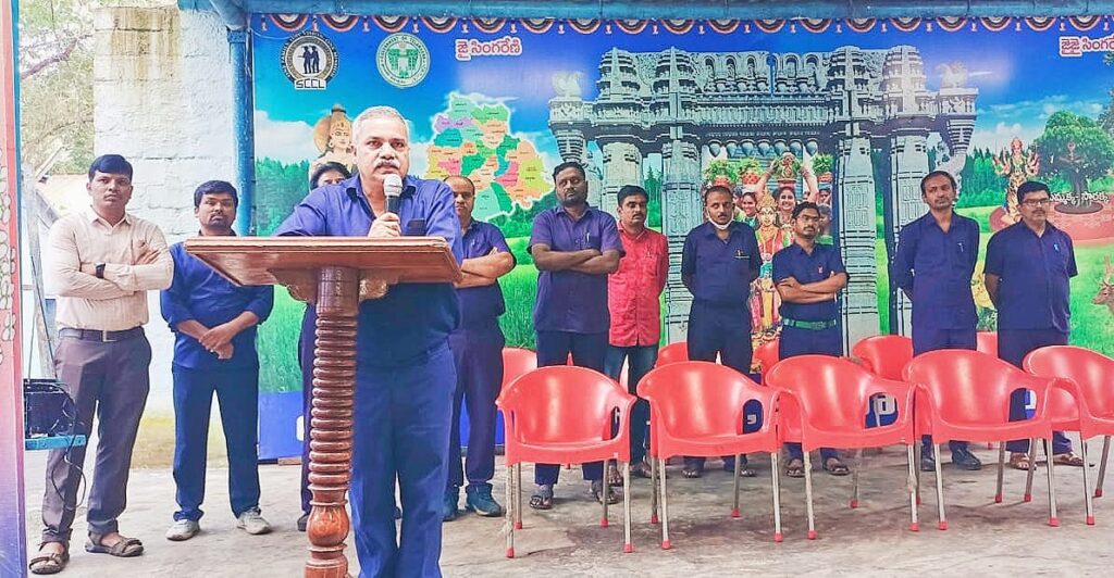 సింగరేణి సంస్థ ఉద్యోగుల రక్షణకు అధిక ప్రాధాన్యత ఇస్తుందని ఆర్.కె 7 గని మేనేజర్ సాయి ప్రసాద్ అన్నారు. మంగళవారం శ్రీరాంపూర్ ఏరియా లోని ఆర్.కె 7 గని ఆవరణలో ఏర్పాటు చేసిన సమావేశంలో గని మేనేజర్ సాయి ప్రసాద్ మాట్లాడుతూ సెప్టెంబర్ నెలలో ఆర్కే-7 గని 102 శాతం బొగ్గు ఉత్పత్తి సాధించడం అభినందనీయమని, రాబోవు రోజుల్లో ఇదే స్ఫూర్తిని కొనసాగిస్తూ వార్షిక ఉత్పత్తి లక్ష్యాన్ని చేరుకోవాలన్నారు. పని స్థలాల్లో రక్షణతో కూడిన ఉత్పత్తికి ఎక్కువ ప్రాధాన్యత ఇవ్వాలన్నారు. గడిచిన 6 మాసాల్లో గనిలో ఎలాంటి ప్రమాదాలు చోటు చేసుకోలేదని, ప్రమాద రహిత గనిగా ఆర్కే-7 గని ముందుందని, రక్షణ సూత్రాలు పాటిస్తూ విధులు నిర్వహిస్తున్న ఉద్యోగులను అభినందించారు. ప్రతి ఒక్క ఉద్యోగి సేఫ్టీ ఆపరేటింగ్ ప్రొసీజర్ ప్రకారం విధులు నిర్వహించాలని, భద్రతతో కూడిన ఉత్పత్తి సాధించే విధంగా ప్రణాళిక ఏర్పాటు చేసుకోవాలని సూచించారు. ఉద్యోగుల రక్షణకే సింగరేణి సంస్థ మొదటి ప్రాధాన్యత ఇస్తుందని, రక్షణ పై అనేక అవగాహన సదస్సులు నిర్వహిస్తున్నామని, మన రక్షణ ఇంటి నుండే మొదలవుతుందని విధులకు హాజరయ్యే ప్రతి ఒక్క ఉద్యోగి తప్పనిసరిగా బైకులపై హెల్మెట్ ధరించి విధులకు హాజరు కావాలని పిలుపునిచ్చారు. అనంతరం సింగరేణి వ్యాప్తంగా ఈ నెల 31వ తేదీ వరకు నిర్వహిస్తున్న స్వచ్ఛత స్పెషల్ క్యాంపెయిన్ 3.0 లో ఉద్యోగులు భాగస్వాములై గని లోని ప్రదేశాలు, కార్యాలయాలను శుభ్రంగా, సుందరీకరణగా ఉంచాలన్నారు. ఈ కార్యక్రమంలో రక్షణ అధికారి రవిశంకర్, ఫిట్ ఇంజనీర్ ప్రవీణ్, అండర్ మేనేజర్లు రవీందర్, శ్రీనివాస్, రాజు, సంక్షేమ అధికారి సంతన్, టీబీజీకేఎస్ ఫిట్ సెక్రటరీ మెండె వెంకటి, ఏఐటీయూసీ ఫిట్ సెక్రటరీ బీర రవీందర్, ఐఎన్టియుసి ఫిట్ సెక్రటరీ శ్రీకాంత్, సిఐటియు ఫిట్ సెక్రటరీ శ్రీధర్, బిఎంఎస్ ఫిట్ సెక్రటరీ మహేందర్, హెచ్ఎంఎస్ ఫిట్ సెక్రటరీ రాజేందర్, సూపర్వైజర్లు, అధికారులు తదితరులు పాల్గొన్నారు.