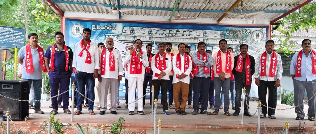 ఆర్.కె న్యూస్, నస్పూర్: గుర్తింపు కార్మిక సంఘం ఎన్నికల్లో భాగంగా కార్మికులకు ఇచ్చిన హామీల అమలుకు కృషి చేస్తామని అన్నారు. సింగరేణి గుర్తింపు కార్మిక సంఘం సింగరేణి కాలరీస్ వర్కర్స్ యూనియన్ రాష్ట్ర అధ్యక్షులు, వేజ్ బోర్డు శాశ్వత సభ్యులు వాసిరెడ్డి సీతారామయ్య అన్నారు. మంగళవారం గుర్తింపు కార్మిక సంఘం ఆధ్వర్యంలో ఆర్.కె 5 గని పై ఏర్పాటు చేసిన గేట్ మీటింగ్ కు ముఖ్య అతిథిగా హాజరైన గుర్తింపు సంఘం రాష్ట్ర అధ్యక్షులు వాసిరెడ్డి సీతారామయ్య మాట్లాడుతూ అవగాహన లేని కొన్ని కార్మిక సంఘాలు కార్మికులను అయోమయానికి గురి చేయడానికి, కార్మికుల్లో వారి మనుగడ కొరకు, కార్మికుల్లో ఏఐటియుసికి ఉన్న ఆదరణ చూసి ఓర్వలేకే లాభాల వాటా పై తప్పుడు ప్రచారాలు చేశాయని అన్నారు. తాము గత 20 సంవత్సరాల నుండి కంపెనీకి వచ్చిన స్థూల లాభం, కంపెనీ అభివృద్ధి కొరకు ఉపయోగించే మొత్తాన్ని మినహాయించి నికర లాభాల మొత్తం నుండి కార్మికులకు పంచిన లాభాల వాటా శాతాన్ని తాము అన్ని గనులలో కార్మికులు అర్థమయ్యే విధంగా గోడ ప్రతులు వేసామని అన్నారు. కార్మికులను అయోమయానికి గురి చేయడానికి ప్రయత్నించిన కార్మిక సంఘాలు బేషరతుగా క్షమాపణలు చెప్పాలన్నారు. గుర్తింపు కార్మిక సంఘంగా గుర్తింపు పత్రం 8 నెలలు ఆలస్యమైనప్పటికీ తాము కార్మికుల పక్షాన ఉండి ఎప్పటికప్పుడు సమస్యలను యాజమాన్యం దృష్టికి తీసుకువెళ్లి పరిష్కరించామని, డిపెండెంట్ ఉద్యోగాల వయోపరిమితిని 35 సంవత్సరాల నుంచి 40 సంవత్సరాలకు పెంచడానికి కృషి చేశామని అన్నారు. ఈ కార్యక్రమంలో డిప్యూటీ ప్రధాన కార్యదర్శులు కందికట్ల వీరభద్రయ్య, ముస్కె సమ్మయ్య, శ్రీరాంపూర్ బ్రాంచ్ కార్యదర్శి ఎస్ కే బాజీ సైదా, ఏరియా కార్యదర్శి ప్రసాద్ రెడ్డి, పిట్ కార్యదర్శి గునిగంటి నర్సింగ్ రావు, కాంట్రాక్ట్ వర్కర్స్ యూనియన్ బెల్లంపల్లి రీజియన్ కార్యదర్శి అప్రోజ్ ఖాన్, ఎస్ అండ్ పిసి పిట్ కార్యదర్శి ఆడేపు మల్లికార్జున్, పిట్ సహాయ కార్యదర్శి లక్కిరెడ్డి సత్తిరెడ్డి, నాయకులు మాడగొని మల్లేష్, శ్రీకాంత్, దేవేందర్ తదితరులు పాల్గొన్నారు.
