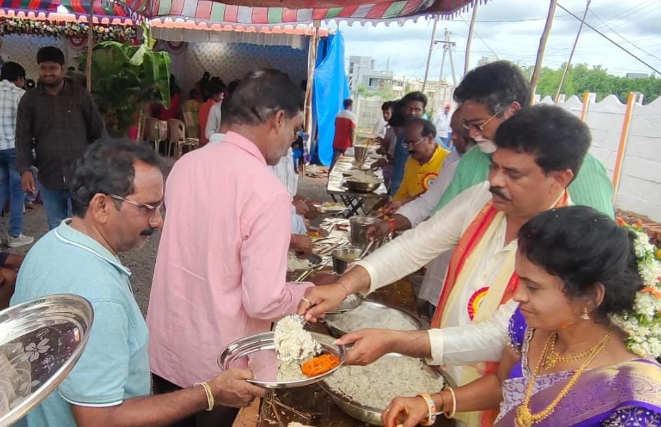 నస్పూర్, ఆర్.కె న్యూస్: టీఎన్జీవో హౌసింగ్ సొసైటీ బోర్డు ఆధ్వర్యంలో నస్పూర్ పట్టణంలోని శ్రీ సిద్ధి వినాయక గణేశ్ మండలి వద్ద గణపతి నవరాత్రి ఉత్సవాలు పర్యావరణహితంగా నిర్వహిస్తున్నారు. సొసైటీ సొంత స్థలంలో తెలంగాణ కాలుష్య నియంత్రణ మండలి పర్యవేక్షణలో తయారు చేసిన ప్రత్యేక బంక మట్టి విగ్రహాన్ని ఏర్పాటు చేసి, సింగిల్ యూజ్ ప్లాస్టిక్ వాడకుండా పూజా కార్యక్రమాలు నిర్వహిస్తున్నారు. శుక్రవారం నిర్వహించిన కుంకుమ పూజకు మహిళలు అధిక సంఖ్యలో హాజరయ్యారు. ఈ సందర్భంగా టీఎన్జీవో అధ్యక్షుడు గడియారం శ్రీహరి మాట్లాడుతూ, టీఎన్జీవోస్ ఆధ్వర్యంలో మొదటిసారి గణపతి నవరాత్రి ఉత్సవాలు వైభవంగా నిర్వహిస్తున్నామని, త్వరలోనే ఇదే స్థలంలో అందరి సలహా మేరకు ఆలయాన్ని నిర్మిస్తామని అన్నారు. ఉద్యోగుల సమస్యల పరిష్కారంలో ప్రభుత్వం ప్రత్యేక చొరవ చూపాలని కోరారు. వినాయక ఉత్సవ కమిటీ నిర్వాహక అధ్యక్షుడు, పర్యావరణ వేత్త, మట్టి విగ్రహ దాత గుండేటి యోగేశ్వర్ మాట్లాడుతూ, సింగిల్ యూజ్ ప్లాస్టిక్ నివారణకు అవసరమైన అన్ని చర్యలు తీసుకుంటూ అన్నదానం, ప్రసాద వితరణ, పూజలు, స్టీలు పళ్ళాలు, గ్లాసులు, ఆకు దొప్పలు వినియోగిస్తూ కార్యక్రమాలు నిర్వహిస్తున్నామని, గణపతి మండపం ఆవరణలో పచ్చని మొక్కలు ఏర్పాటు చేసామని, సాంస్కృతిక కార్యక్రమాలు నిర్వహిస్తున్నట్లు పేర్కొన్నారు. ఈ కార్యక్రమంలో నాయకులు హబీబ్, రామ్మోహన్, పొన్న మల్లయ్య, మొండయ్య, నాగేశ్వర్, శ్రీపతి బాపురావు, సలహాదారులు, కమిటీ సభ్యులు, భక్తులు తదితరులు పాల్గొన్నారు.