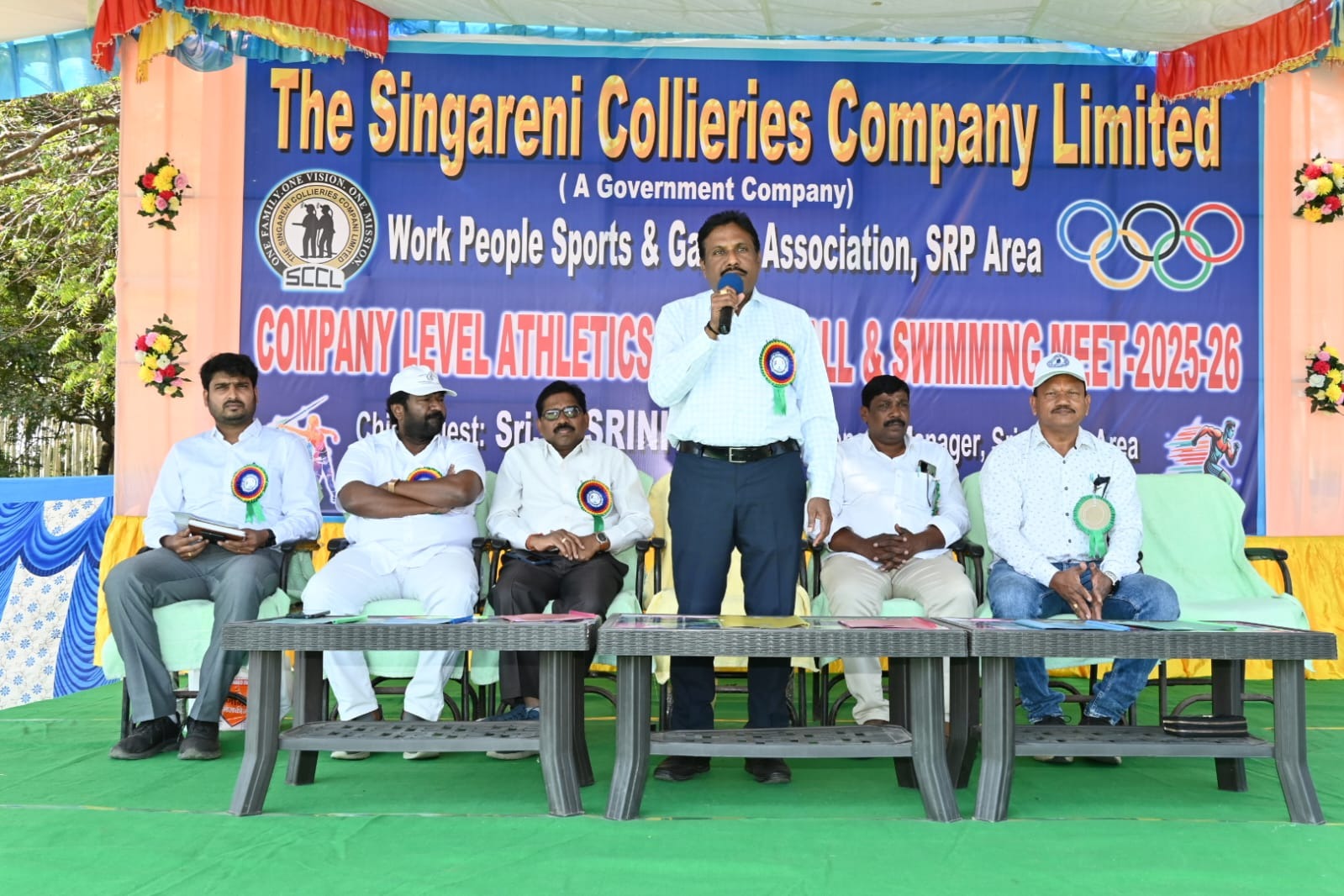 నస్పూర్, ఆర్.కె న్యూస్: శ్రీరాంపూర్ ఏరియాలోని శాంతి మైదానంలో వర్క్స్ పీపుల్స్ స్పోర్ట్స్ అండ్ గేమ్స్ అసోసియేషన్ ఆధ్వర్యంలో నిర్వహిస్తున్న సింగరేణి కంపెనీ స్థాయి అథ్లెటిక్స్, త్రోబాల్, స్విమ్మింగ్ క్రీడా పోటీలు మంగళవారం అట్టహాసంగా ప్రారంభమయ్యాయి. ఈ పోటీలను శ్రీరాంపూర్ ఏరియా జనరల్ మేనేజర్ మునిగంటి శ్రీనివాస్ ముఖ్య అతిథిగా విచ్చేసి, ఒలింపిక్ పతాకాన్ని ఆవిష్కరించి అధికారికంగా ప్రారంభించారు. ఈ సందర్భంగా జనరల్ మేనేజర్ మాట్లాడుతూ.. సింగరేణి సంస్థలో పనిచేస్తున్న ఉద్యోగులు తమ రోజువారీ విధి నిర్వహణలో నిమగ్నమవుతూనే, క్రీడల్లో చురుకుగా పాల్గొనడం అభినందనీయమన్నారు. క్రీడల ద్వారా శారీరక దారుఢ్యంతో పాటు మానసిక ఉల్లాసం లభిస్తుందని, ఇది సంస్థలో ఆరోగ్యవంతమైన పని వాతావరణానికి దోహదపడుతుందని పేర్కొన్నారు. ఇక్కడ ప్రతిభ కనబరిచిన క్రీడాకారులు జాతీయ స్థాయి పోటీల్లో పతకాలు సాధించి, సింగరేణి సంస్థ కీర్తి ప్రతిష్టలను ఇనుమడింపజేయాలని ఆయన ఆకాంక్షించారు. సింగరేణి యాజమాన్యం క్రీడాకారుల ప్రోత్సాహం కోసం మైదానాలు, స్టేడియంలు, సీఈఆర్ క్లబ్ లు, స్విమ్మింగ్ పూల్స్ వంటి అత్యాధునిక మౌలిక సదుపాయాలను కల్పించిందని జీఎం తెలిపారు. యువ క్రీడాకారులు వీటిని సమర్థవంతంగా వినియోగించుకొని క్రీడారంగంలో ఉన్నత శిఖరాలను అధిరోహించాలని సూచించారు. ఈ క్రీడా పోటీల్లో భాగంగా మహిళలకు ప్రత్యేకంగా త్రోబాల్, రన్నింగ్, త్రోస్, లాంగ్ జంప్ పోటీలను నిర్వహించారు. పురుషుల విభాగంలో రన్నింగ్, లాంగ్ జంప్, త్రోస్, స్విమ్మింగ్ పోటీలను ఏర్పాటు చేశారు. వివిధ ఏరియాల నుండి తరలివచ్చిన క్రీడాకారులు ఉత్సాహంగా పోటీ పడుతున్నారు. ఈ కార్యక్రమంలో ఎస్వోటు జీఎం, స్పోర్ట్స్ వైస్ ప్రెసిడెంట్ ఎన్. సత్యనారాయణ, గుర్తింపు సంఘం అసిస్టెంట్ బ్రాంచ్ సెక్రటరీ మోత్కూరి కొమురయ్య, డీజీఎం (పర్సనల్), చీఫ్ కోఆర్డినేటర్ ఎస్. అనిల్ కుమార్, ఆర్.కె 5 గని ఏజెంట్ శ్రీధర్, డిప్యూటీ సిఎంఓ డాక్టర్ పి. రమేష్ బాబు, స్పోర్ట్స్ సెక్రటరీ సృజన్ పాల్, స్పోర్ట్స్ సూపర్వైజర్ చాట్ల అశోక్, జాన్ వెస్లీ, పర్సా శ్రీనివాస్, ఎం. నరేందర్ రెడ్డి, సిహెచ్ రమేష్, కోఆర్డినేటర్ ఎస్. నరసయ్య, జనరల్ కెప్టెన్ శ్రీనివాస్, ఇండోర్ కెప్టెన్ తోట సురేష్, వివిధ ఏరియాల కోఆర్డినేటర్లు, క్రీడాకారులు పాల్గొన్నారు.
