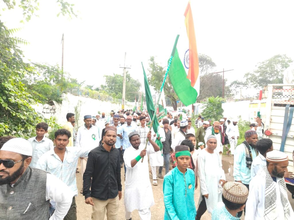 కాగజ్ నగర్, ఆర్.కె న్యూస్: ముస్లీం సోదరులు మహ్మద్ ప్రవక్త జన్మదినాన్ని దైవ ఘట్టంగా జరుపుకుని ఆయన పట్ల ప్రేమను, భక్తిని చాటుకున్నారు. ఇస్లాం మతంలో ఈద్ మిలాద్ ఉన్ నబీ పండుగకు ఎంతో ప్రాముఖ్యత ఉంది. ఇస్లాం మతాన్ని స్థాపించిన చివరి మహ్మద్ ప్రవక్త పుట్టిన రోజునే ఈద్ మిలాద్ ఉన్ నబీ పండుగను జరుపుకుంటారు. కాగజ్ నగర్ పట్టణంలో ముస్లీం సోదరులు మిలాద్ ఉన్ నబీ సందర్భంగా శుక్రవారం ఘనంగా ర్యాలీ (జులుస్) నిర్వహించారు. ముందుగా జామియా మజీద్లో ప్రత్యేక ప్రార్థనలు చేసిన అనంతరం ర్యాలీని మిలాద్ ఉన్ నబీ అడక్ కమిటీ ఆధ్వర్యంలో జామియా మజీద్ ఇమామ్, కమిటీ సభ్యులు ప్రారంభించారు. ఈ ర్యాలీ జామియా మజీద్ నుండి రాజీవ్ గాంధీ చౌరస్తా, అంబేద్కర్ చౌరస్తా, లారీ చౌరస్తా, ఎన్టీఆర్ చౌరస్తా, బస్టాండ్, ఓల్డ్ కాలనీ, సర్స్కిల్ నుండి తిరిగి జామియా మజీద్ వరకు చేరుకుంది. ప్రత్యేకంగా వాహనాలను అలంకరించి భక్తిశ్రద్ధలతో ర్యాలీనిర్వహించారు. ఈ సందర్భంగా మహమ్మద్ ప్రవక్త పుట్టినరోజు సందర్భంగా అందరూ శాంతియుతంగా ఉండాలని నినాదంతో ఐకమత్యంతో కలిసి ర్యాలీ తీసే వారికి మాజీ ఎమ్మెల్యే కోనేరు కోనప్ప ఆధ్వర్యంలో అరటి పండ్లు, మంచి నీళ్లు, లస్సి, మజ్జిక, పంపిణీ చేశారు.బీఆర్ఎస్, బీఎస్పి, కాంగ్రెస్తో పాటు వివిధ సంస్థల ఆధ్వర్యంలో స్వీట్లు, జ్యూస్, పండ్లు, మంచినీళ్ల బాటిళ్లు పంపిణి చేశారు. కాగజ్ నగర్ డిఎస్పి వహీద్ ఉద్దీన్ ఆధ్వర్యంలో పోలీస్ అధికారులు, పోలీస్ సిబ్బంది భారీ బందోబస్తు నిర్వహించారు. ఈ సంద ర్భంగా పలువురు మాట్లాడుతూ మహ్మద్ ప్రవక్త జన్మదినం పురస్కరించుకుని ముస్లీం సోదరులందరూ భక్తిశ్రద్ధలతో ఉంటూ సేవ కార్యక్రమాలు చేపట్టడం సంతోషరమని, ప్రతీ ఒక్కరు మహ్మద్ ప్రవక్త అడుగుజాడల్లో నడవాలని వారన్నారు. ఈ కార్యక్రమంలో మజీద్ ల ఇమాములు, మత పెద్దలు, ముస్లిం సోదరులు తదితరులు పాల్గొన్నారు.