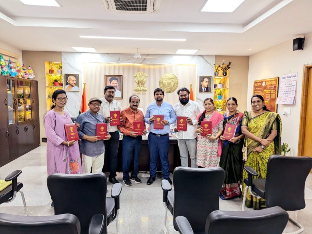 ఆర్.కె న్యూస్, నస్పూర్: తెలంగాణ సైకాలజిస్ట్ అసోసియేషన్ నూతన సంవత్సర క్యాలెండర్, డైరీని మంచిర్యాల జిల్లా కలెక్టర్ కుమార్ దీపక్ గురువారం నస్పూర్ లోని సమీకృత జిల్లా కార్యాలయాల సముదాయంలోని తన ఛాంబర్ లో ఆవిష్కరించారు. ఈ సందర్భంగా జిల్లా కలెక్టర్ మాట్లాడుతూ, సమాజాభివృద్ధికి సైకాలజిస్టుల పాత్ర ఎంతో విలువైనదని, సమాజంలోని మానసిక రుగ్మతలు తొలగించడానికి, విద్యార్థులలో మానసిక సామర్థ్యాన్ని, ఆత్మవిశ్వాసాన్ని, జీవన నైపుణ్యాలను పెంచడానికి, పరీక్ష సమయంలో విద్యార్థులు ఒత్తిడిని అధిగమించడానికి, యువత గొప్ప వ్యక్తిత్వాన్ని అలవర్చుకునేందుకు సైకాలజిస్టుల సేవలు అవసరమని తెలిపారు. అనంతరం తెలంగాణ సైకాలజిస్ట్ అసోసియేషన్ జిల్లా అధ్యక్షులు, అడ్వకేట్, సైకాలజిస్ట్ రంగు వేణు కుమార్ తమ అసోసియేషన్ ద్వారా నిర్వహిస్తున్న కార్యక్రమాల వివరాలను జిల్లా కలెక్టర్ కు తెలియజేశారు. ఈ కార్యక్రమంలో రాష్ట్ర ఉపాధ్యక్షులు బి. నారాయణ, జిల్లా ప్రధాన కార్యదర్శి జి. సుమన చైతన్య, వైస్ ప్రెసిడెంట్ బి. రజిత, గౌరవ సలహాదారు గుండేటి యోగేశ్వర్, సైకాలజిస్టులు సృజన మోహన్, తాళ్లపల్లి కవిత, నాగరాజు తదితరులు పాల్గొన్నారు.