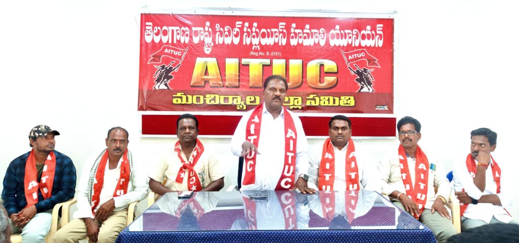 నస్పూర్, మార్చి 27 (ఆర్.కె న్యూస్): కార్మికవర్గం ఎదుర్కొంటున్న సమస్యల పరిష్కారం కోసం మే 20న తలపెట్టిన దేశవ్యాప్త సమ్మెకు కార్మికవర్గం సిద్ధం కావాలని ఏఐటీయూసీ రాష్ట్ర ప్రధాన కార్యదర్శి ఎస్. బాలరాజు అన్నారు. గురువారం శ్రీరాంపూర్ లో జరిగిన మంచిర్యాల జిల్లా సివిల్ సప్లై హమాలీ యూనియన్ సమావేశానికి ఏఐటీయూసీ రాష్ట్ర ప్రధాన కార్యదర్శి ఎస్. బాలరాజు ముఖ్య అతిథిగా హాజరై మాట్లాడారు. దేశంలో కార్మిక వర్గం ఎదుర్కొంటున్న సమస్యల పరిష్కారానికి, 44 కార్మిక చట్టాలను 4 కోడ్ లుగా మార్చి, ఏప్రిల్ 1 నుంచి అమలు చేయడాన్ని వెంటనే నిలిపివేయాలని కోరుతూ కేంద్ర కార్మిక సంఘాల నాయకత్వంలో మే 20న దేశవ్యాప్త సమ్మె విజయవంతం చేయాలని కార్మికవర్గాన్ని కోరారు. దేశంలో కార్మిక వర్గానికి హక్కులు లేకుండా కార్పొరేట్ అనుకూల శక్తులకు కేంద్రంలోని నరేంద్ర మోడీ ప్రభుత్వం వత్తాసు పలుకుతుందని, కార్మిక చట్ట సవరణలకు వ్యతిరేకంగా కార్మికవర్గం పోరాడాలని పేర్కొన్నారు. ఈ కార్యక్రమంలో ఏఐటీయూసీ జిల్లా ప్రధాన కార్యదర్శి మేకల దాసు, ఉపాధ్యక్షులు మిట్టపల్లి పౌలు, సివిల్ సప్లై హమాలీ కార్మికులు పానుగంటి సత్యనారాయణ, తిప్పని సత్తయ్య, పోరండ్ల సంపత్, నరేష్, రాజన్న, మామిడి చంద్రయ్య తదితరులు పాల్గొన్నారు.