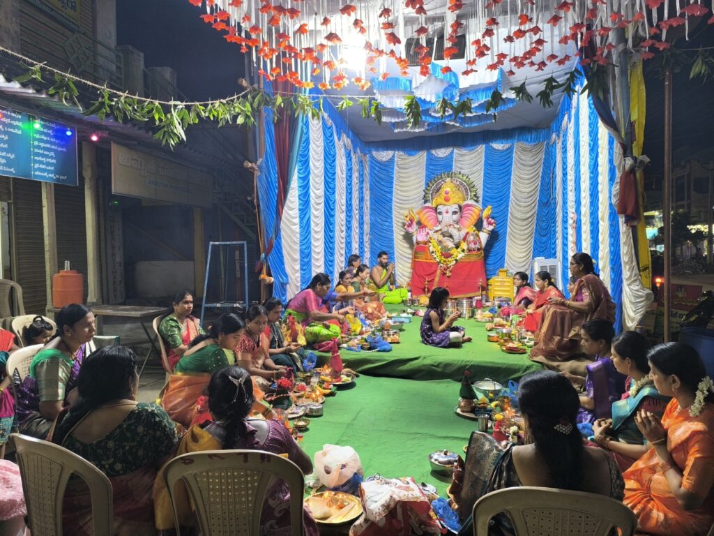 ఆర్.కె న్యూస్, నస్పూర్: వినాయక నవరాత్రి ఉత్సవాల్లో భాగంగా శుక్రవారం నస్పూర్ పట్టణంలోని శ్రీలక్ష్మి గణేష్ మండలి వద్ద అర్చకులు సముద్రాల వెంకట రమణాచార్యుల ఆధ్వర్యంలో సామూహిక కుంకుమార్చన పూజలు భక్తిశ్రద్ధలతో నిర్వహించారు. కుంకుమార్చన పూజలో మహిళలు, స్థానికులు పెద్ద సంఖ్యలో పాల్గొన్నారు. గణేష్ నవరాత్రులను పురస్కరించుకొని శ్రీలక్ష్మి గణేష్ మండలి కమిటీ ఆధ్వర్యంలో విఘ్నేశ్వరునికి తిరోక్క పూలు, నైవేద్యం సమర్పించి భక్తితో కొలుస్తున్నారు. గణపతి బప్పా మోరియా, గణేష్ మహారాజ్ కి జై అనే భక్తుల నినాదాలతో గణేష్ మండపం పరిసరాల్లో ఆధ్యాత్మిక వాతావరణం నెలకొంది. ఈ కార్యక్రమంలో కమిటీ సభ్యులు అనుమాండ్ల వెంకట్ రెడ్డి, జక్కినబోయిన గోపాల్, రామగిరి బాలరాజు, క్యాతం రాజేష్, కాటం రామ్ రెడ్డి, టేకుమట్ల అంజయ్య, మండల తిరుపతి, తిరుపతి గౌడ్, రాయమల్లు, స్థానికులు తదితరులు పాల్గొన్నారు.