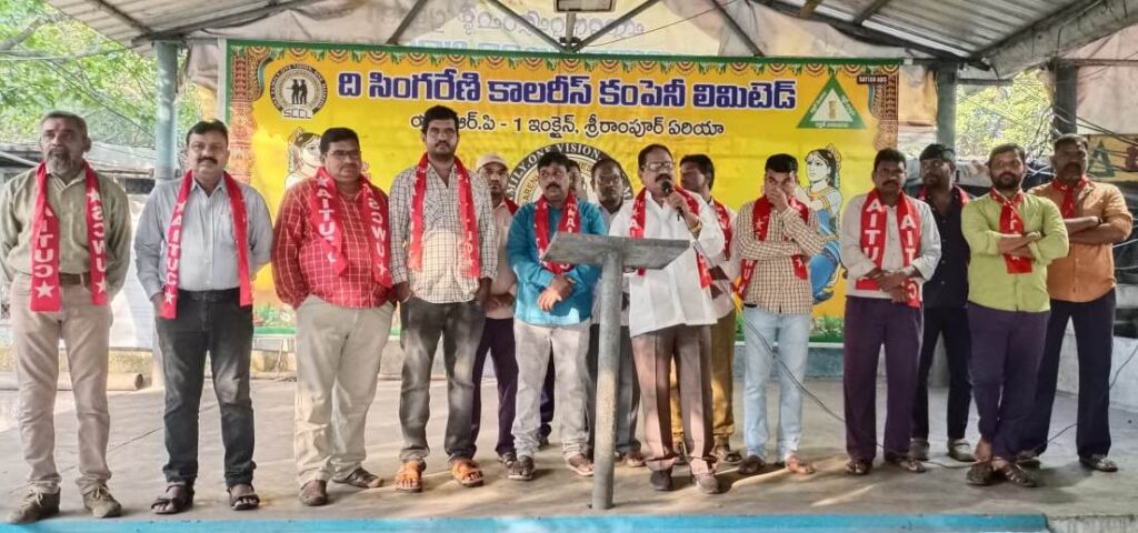 మితిమీరిన రాజకీయ జోక్యంతో సింగరేణి సంస్థ అప్పుల పాలవుతుందని ఏఐటీయూసీ ఏఐటీయూసీ డిప్యూటీ జనరల్ సెక్రెటరీ కె. వీరభద్రయ్య అన్నారు. గురువారం శ్రీరాంపూర్ ఏరియాలోని ఎస్సార్పీ1 గని పై ఏర్పాటు చేసిన గేట్ మీటింగ్ లో ఏఐటీయూసీ డిప్యూటీ జనరల్ సెక్రటరీ మాట్లాడుతూ గత ఎన్నికల్లో గుర్తింపు సంఘంగా గెలుపొందిన తెలంగాణ బొగ్గు గని కార్మిక సంఘం చేతగానితనం వల్ల సింగరేణి సంస్థ కు వచ్చిన లాభాలు రాష్ట్ర ప్రభుత్వ ఖజానాకు చేరుతున్నాయన్నారు. కార్మికులకు జీతాలు చెల్లించడానికి యాజమాన్యం బ్యాంకుల చుట్టూ ప్రదక్షిణలు చేయవలసిన పరిస్థితి నెలకొందన్నారు. తెలంగాణ బొగ్గు గని కార్మిక సంఘం వైఫల్యం కారణంగానే సింగరేణి సంస్థకు రావాల్సిన 29 వేల కోట్ల రూపాయల బకాయిలు రాష్ట్ర ప్రభుత్వం చెల్లించడం లేదన్నారు. ఈనెల 28న జరగాల్సిన గుర్తింపు సంఘం ఎన్నికలు వాయిదా పడటానికి రాష్ట్ర ప్రభుత్వం, సింగరేణి యాజమాన్యం, తెబొగకాసం, ఇతర 11 కార్మిక సంఘాలేనని విమర్శించారు. కార్మికులు తమ సమస్యలను యాజమాన్యం దృష్టికి తీసుకెళ్తే యాజమాన్యం కక్ష సాధింపు చర్యలకు పాల్పడుతుందని, తెబొగకాసం వైఫల్యం కారణంగానే కార్మికుల సమస్యలు పరిష్కారానికి నోచుకోవడం లేదని అన్నారు. కార్మికుల సమస్యలు పరిష్కరించని యెడల ఏఐటీయూసీ ఆధ్వర్యంలో ఆందోళన కార్యక్రమాలు చేపడతామని యాజమాన్యాన్ని హెచ్చరించారు. ఈ కార్యక్రమంలో ఏఐటీయూసీ బ్రాంచ్ సహాయ కార్యదర్శి మోత్కూరి కొమురయ్య, సంయుక్త కార్యదర్శి రాచర్ల చంద్రమోహన్, ఏరియా కార్యదర్శి కామర వేణు, పిట్ కార్యదర్శి దాడి రాజయ్య, మైనింగ్ స్టాప్ ఇంచార్జ్ మారేపల్లి బాపు, కాంట్రాక్ట్ వర్కర్స్ యూనియన్ బెల్లంపల్లి రీజియన్ ప్రధాన కార్యదర్శి అఫ్రోజ్ ఖాన్, నాయకులు మోతె లచ్చయ్య, అనంతరెడ్డి తదితరులు పాల్గొన్నారు.