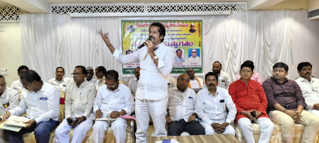 ఆర్.కె న్యూస్, మంచిర్యాల: రాజ్యాధికారంతోనే కుల సంఘాలు బలోపేతం అవుతాయని, పద్మశాలీలు రాజకీయంగా ఎదగాలని తెలంగాణ ప్రాంత పద్మశాలి సంఘం రాష్ట్ర అధ్యక్షుడు కమర్తపు మురళి అన్నారు. జిల్లాల పర్యటనలో భాగంగా తెలంగాణ ప్రాంత పద్మశాలి సంఘం రాష్ట్ర కార్యవర్గ సభ్యులు శనివారం మంచిర్యాలకు వచ్చారు. మంచిర్యాల పట్టణంలోని ఓ సమావేశ మందిరంలో నిర్వహించిన సమావేశంలో తెలంగాణ ప్రాంత పద్మశాలి సంఘం రాష్ట్ర అధ్యక్షుడు కమర్తపు మురళి మాట్లాడుతూ రాష్ట్రంలో పద్మశాలీల స్థితిగతులు పరిశీలించడంతో పాటు రాజకీయ చైతన్యం పెంపొందించడానికి జిల్లాల పర్యటన చేపట్టినట్లు తెలిపారు. రాష్ట్రంలోని 18 నియోజకవర్గాల్లో పద్మశాలీలు మెజారిటీ సంఖ్యలో ఉన్నారని, రాబోయే స్థానిక సంస్థలు, మున్సిపల్ ఎన్నికల్లో పద్మశాలీలు గెలుపోటములతో సంబంధం లేకుండా పోటీ చేయాలన్నారు. కేంద్ర, రాష్ట్ర ప్రభుత్వాలు చేనేత కార్మికులకు చేయూత అందించాలని కోరారు. జాతీయ చేనేత దినోత్సవం రోజున నేతన్న భీమాకు సంబంధించిన 6 కోట్ల రూపాయల చెక్కును రాష్ట్ర ప్రభుత్వం ఎల్ఐసి వారికి అందిచినట్లు తెలిపారు. రాష్ట్ర ప్రభుత్వం, స్థానిక ఎమ్మెల్యే సహకారంతో మంచిర్యాల జిల్లాలో టెక్స్ టైల్ పార్క్ ఏర్పాటుకు కృషి చేస్తామన్నారు. పద్మశాలి యువత విద్యతో పాటు పలు రంగాల్లో ప్రతిభ చాటుతున్నారని అన్నారు. యువత సేవా దృక్పథం, పోటీతత్వం అలవర్చుకోవాలని, రాజకీయాల్లోకి రావాలని ఆకాంక్షించారు. జిల్లాలో పద్మశాలీల బలోపేతానికి కృషి చేస్తున్న పలువురికి రాష్ట్ర కార్యవర్గంలో చోటు కల్పించారు. ఈ మేరకు వారికి ధృవ పత్రాలు అందజేశారు. ఈ కార్యక్రమంలో అఖిల భారత పద్మశాలి సంఘం ప్రధాన కార్యదర్శి గడ్డం జగన్నాథం, తెలంగాణ ప్రాంత పద్మశాలి సంఘం ప్రధాన కార్యదర్శి మాచర్ల రాంచందర్, కోశాధికారి బొమ్మ రఘురాం, కార్యదర్శి చిలువేరు సదానందం, యూత్ అధ్యక్షులు అవ్వారి భాస్కర్, మంచిర్యాల జిల్లా అధ్యక్షులు గాదాసు బాపు, గౌరవ అధ్యక్షులు గడ్డం సుధాకర్, యూత్ అధ్యక్షులు బింగి ప్రవీణ్, మంచిర్యాల పట్టణ అధ్యక్షులు రాం సత్తయ్య, పద్మశాలి కుల బాంధవులు తదితరులు పాల్గొన్నారు.