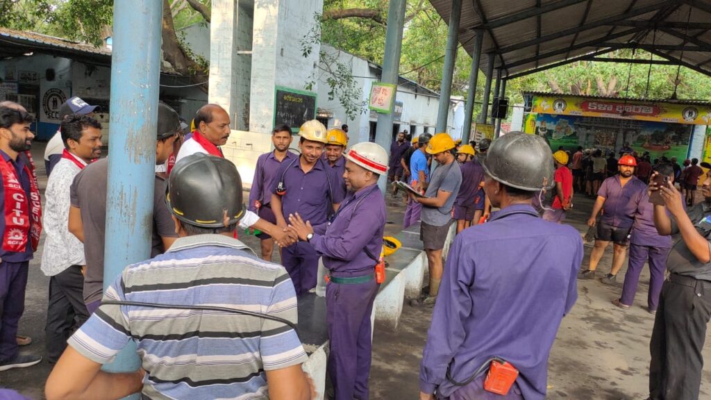 ఆర్.కె న్యూస్ , నస్పూర్: సింగరేణి కార్మికుల సమస్యలపై గుర్తింపు సంఘం ఏఐటీయూసీకి ఏమాత్రం చిత్తశుద్ధి ఉన్నా రెండు సంవత్సరాల కాల పరిమితికి అంగీకరించాలని సింగరేణి కాలరీస్ ఎంప్లాయిస్ యూనియన్ రాష్ట్ర అధ్యక్షులు తుమ్మల రాజారెడ్డి అన్నారు. గురువారం బ్రాంచ్ అధ్యక్షులు గుల్ల బాలాజీతో కలిసి శ్రీరాంపూర్ ఏరియాలోని ఆర్.కె7 గని కార్మికుల సమస్యలను అడిగి తెలుసుకున్నారు. ఈ సందర్భంగా సింగరేణి కాలరీస్ ఎంప్లాయిస్ యూనియన్ రాష్ట్ర అధ్యక్షులు మాట్లాడుతూ సింగరేణిలో గుర్తింపు సంఘం ఎన్నికలు జరిగినా కార్మికుల సమస్యలు పరిష్కారానికి నోచుకోవడం లేదన్నారు. గుర్తింపు సంఘం కాల పరిమితి నాలుగు సంవత్సరాల ఉండాలని ఏఐటీయూసీ తెలంగాణ ప్రభుత్వానికి లేఖ రాసిన కారణంగా గుర్తింపు పత్రం జారీ చేయడంలో ఆలస్యం జరుగుతుందన్నారు. అనంతరం కార్మికులు తన దృష్టికి తీసుకువచ్చిన పలు సమస్యలను గని మేనేజర్ గారి దృష్టికి తీసుకెళ్లగా సానుకూలంగా స్పందించినట్లు తుమ్మల రాజారెడ్డి తెలిపారు. ఈ కార్యక్రమంలో పిట్ సెక్రటరీ శ్రీధర్, పిట్ కమిటీ సభ్యులు సమ్మయ్య, ప్రవీణ్, నరేష్, అనిల్, కార్మికులు తదితరులు పాల్గొన్నారు.