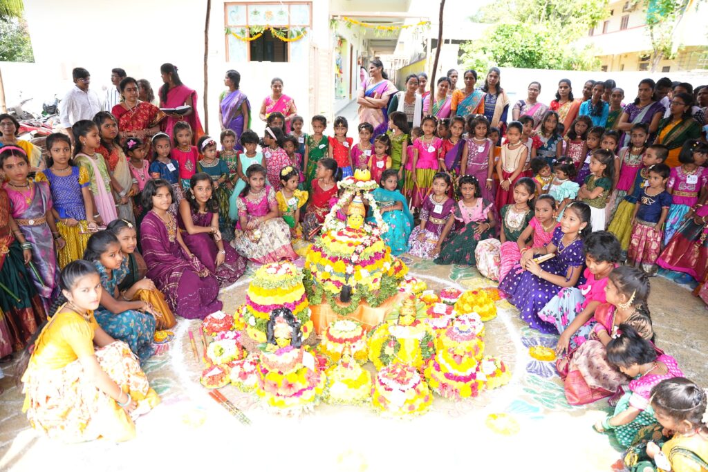 శ్రీ రెయిన్ బో లో ముందస్తు బతుకమ్మ సంబరాలు