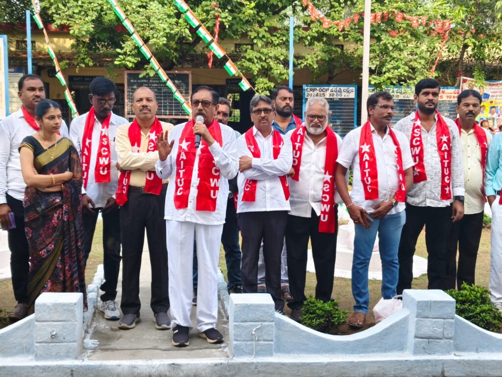 ఆర్.కె న్యూస్, నస్పూర్: తెలంగాణ రాష్ట్ర ప్రభుత్వం సింగరేణి సంస్థకు చెల్లించాల్సిన 27 వేల కోట్ల రూపాయల బకాయిలు తక్షణమే చెల్లించాలని ఏఐటీయూసీ రాష్ట్ర అధ్యక్షులు, వేజ్ బోర్డు శాశ్వత సభ్యులు వాసిరెడ్డి సీతారామయ్య అన్నారు. శుక్రవారం సింగరేణి గుర్తింపు కార్మిక సంఘం ఏఐటీయూసీ ఆధ్వర్యంలో శ్రీరాంపూర్ ఉపరితల గనిలో ఏర్పాటు చేసిన ద్వార సమావేశానికి ఏఐటీయూసీ రాష్ట్ర అధ్యక్షులు వాసిరెడ్డి సీతారామయ్య ముఖ్య అతిథిగా హాజరై, మాట్లాడుతూ గత బిఆర్ఎస్ ప్రభుత్వం మాదిరిగానే కాంగ్రెస్ ప్రభుత్వం కూడా సింగరేణి సొమ్మును దుర్వినియోగం చేస్తుందన్నారు. సింగరేణి యాజమాన్యం సంస్థ సొమ్మును రాష్ట్ర ప్రభుత్వాలకు మళ్లించకుండా, కార్మికుల సంక్షేమానికి ఉపయోగించాలన్నారు. గత ఆర్థిక సంవత్సరం సింగరేణి సంస్థకు వచ్చిన లాభాలను వెంటనే ప్రకటించి, లాభాల్లో 35 శాతం వాటా కార్మికులకు చెల్లించాలని కోరారు. సింగరేణిలో పనిచేస్తున్న కార్మికులందరికీ రెండు గుంటల ఇంటి స్థలం, 20 లక్షల రూపాయలు వడ్డీ లేని రుణాలు ఇప్పించాలన్నారు. గత ప్రభుత్వాల నిర్లక్ష్యం వల్ల సింగరేణి సంస్థ భవిష్యత్తు ప్రశ్నార్థకంగా మారిందని, నూతన బొగ్గు బావులు ఏర్పాటు చేయాలన్నారు. ఒకే కుటుంబం, ఒకే లక్ష్యం, ఒకే గమ్యం అని చెప్పే సింగరేణి యాజమాన్యం పెరిక్స్ పై ఆదాయపు పన్ను అధికారులకు యాజమాన్యమే చెల్లిస్తుందని, కానీ కార్మికులకు ఎందుకు చెల్లించడం లేదని సందర్భంగా ప్రశ్నించారు. ఉపరితల గనిలో నూతన యంత్రాలు కొనుగోలు చేయాలన్నారు. అనంతరం పలు కార్మిక సంఘాల నాయకులు, కార్మికులు సీతారామయ్య సమక్షంలో ఏఐటీయూసీలో చేరారు. ఈ కార్యక్రమంలో డిప్యూటీ ప్రధాన కార్యదర్శులు కందికట్ల వీరభద్రయ్య, ముస్కె సమ్మయ్య, శ్రీరాంపూర్ బ్రాంచ్ కార్యదర్శి ఎస్ కే బాజీ సైదా, బ్రాంచ్ సంయుక్త కార్యదర్శి రాచర్ల చంద్రమోహన్, జీఎం చర్చల ప్రతినిధి బద్రి బుచ్చయ్య, మారుపెల్లి బాబు, కాంట్రాక్ట్ వర్కర్స్ యూనియన్ బెల్లంపల్లి రీజియన్ కార్యదర్శి అఫ్రోజ్ ఖాన్, గునిగంటి నరసింగా రావు, ఫిట్ సహాయ కార్యదర్శి నల్ల సత్తయ్య, నాయకులు మోహన్ రెడ్డి, ఆళ్ల వెంకటరెడ్డి, శంకర్, బానోత్ సరోజ, మైనింగ్ స్టాప్ నాయకులు సాయిబాబా తదితరులు పాల్గొన్నారు.