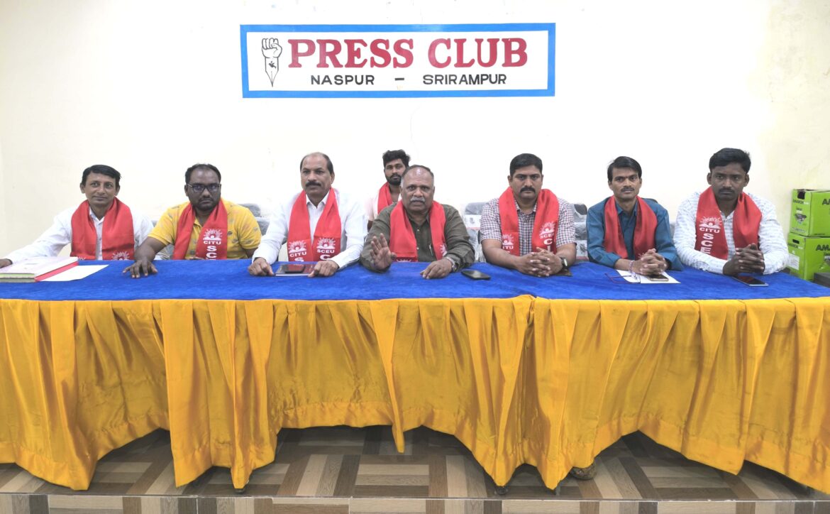 ఆర్.కె న్యూస్, నస్పూర్: సింగరేణిలో అంతర్గత అభ్యర్థులకు నిర్వహించే రాత పరీక్షలు అవకతవకలకు తావులేకుండా పారదర్శకంగా నిర్వహించాలని, పరీక్ష పత్రాన్ని తెలుగులో కూడా ఇవ్వాలని సింగరేణి కాలరీస్ ఎంప్లాయిస్ యూనియన్ (సిఐటియు) రాష్ట్ర అధ్యక్ష, ప్రధాన కార్యదర్శులు తుమ్మల రాజారెడ్డి, మంద నరసింహ రావులు అన్నారు. సోమవారం నస్పూర్ ప్రెస్ క్లబ్ లో విలేకరులతో మాట్లాడుతూ, గత గుర్తింపు సంఘం ఎన్నికల్లో గెలుపొందిన ఏఐటీయూసీ ధృవీకరణ పత్రం తీసుకోకుండా గుర్తింపు సంఘం కాలపరిమితి 2 సంవత్సరాలకు బదులుగా 4 సంవత్సరాల కొరకు ప్రయత్నాలు చేస్తోందని, కార్మికుల శ్రేయస్సు దృష్ట్యా గుర్తింపు సంఘం కాలపరిమితి 2 సంవత్సరాలు ఉంచాలన్నారు. ఏఐటీయూసీ నాయకులు తమకు గుర్తింపు ధృవీకరణ పత్రం ఇవ్వ లేదని చెబుతూనే అన్ని అధికారిక కార్యక్రమాల్లో పాల్గొంటూ కార్మికుల సమస్యలు పట్టించుకోవడం లేదన్నారు. కోల్ ఇండియాలో మాదిరిగా సింగరేణిలో కూడా అన్ని సర్క్యులర్లు వెబ్ సైట్ లో పొందుపరచాలని అన్నారు. యాజమాన్య నిర్లక్ష్యం కారణంగా ప్రమాదాలు జరుగుతున్నాయని అన్నారు. సింగరేణి పాఠశాలల్లో సీబీఎస్ఈ విద్య బోధన అమలుకు యాజమాన్యం చొరవ తీసుకోవడం అభినందనీయమని, కార్మికులు తమ అభిప్రాయాలు తెలపడానికి మరికొంత సమయం ఇవ్వాలన్నారు. సింగరేణి సంస్థ సి అండ్ ఎండి ఎన్. బలరాం కార్మికులు, కార్మిక సంఘాల నాయకులతో మాట్లాడి కార్మికులు ఎదుర్కొంటున్న సమస్యలు తెలుసుకొని, వాటి పరిష్కారానికి కృషి చేయడం హర్షణీయమన్నారు. సింగరేణి ఆసుపత్రులను ఆధునీకరించి, స్పెషలిస్ట్ వైద్యులను నియమించాలన్నారు. కార్మికుల సొంత ఇంటి కలను నెరవేర్చాలని అన్నారు. కేంద్రంలో మళ్ళీ బీజేపీ అధికారంలోకి వస్తే బొగ్గు పరిశ్రమ పరిస్థితి అగమ్యగోచరంగా మారుతుందన్నారు. మెడికల్ బోర్డు అవినీతి మయంగా మారిందని, డబ్బులు లేకుండా మెడికల్ ఇన్వాలిడేషన్లు జరగడం లేదన్నది అందరికీ తెలిసిన విషయమేనని అన్నారు. మెడికల్ బోర్డులో అవినీతి నిర్మూలనకు గతంలో మాదిరి దరఖాస్తు చేసుకున్న కార్మికుల వారసులకు ఉద్యోగాలు కల్పించాలన్నారు. ఈ కార్యక్రమంలో సిఐటియు శ్రీరాంపూర్ బ్రాంచ్ అధ్యక్షుడు గుల్ల బాలాజీ, కార్యదర్శి అంబాల శ్రీనివాస్, ఆర్గనైజింగ్ సెక్రటరీ వెంగళ శ్రీనివాస్, కోశాధికారి కస్తూరి చంద్రశేఖర్, వైస్ ప్రెసిడెంట్ సాయిల్ల శ్రీనివాస్, బ్రాంచ్ నాయకులు ప్రవీణ్ తదితరులు పాల్గొన్నారు.