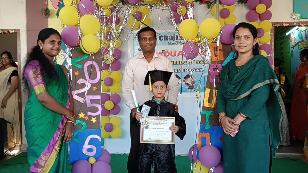 మంచిర్యాల, ఆర్.కె న్యూస్: స్థానిక లక్ష్మీనగర్ లోని శ్రీ చైతన్య పాఠశాలలో శుక్రవారం స్నాతకోత్సవ వేడుకలు కన్నులపండువగా జరిగాయి. 1వ తరగతి, 6వ తరగతిలోకి ప్రవేశిస్తున్న విద్యార్థుల కోసం ఈ కార్యక్రమాన్ని నిర్వహించారు. తల్లిదండ్రుల సమక్షంలో చిన్నారులకు స్నాతకోత్సవ పత్రాలను అందజేశారు. ప్రిన్సిపాల్ అయూబ్ తదుపరి తరగతులకు ప్రమోట్ అయిన విద్యార్థులను అభినందిస్తూ వారి ఉజ్వల భవిష్యత్తుకు శుభాకాంక్షలు తెలిపారు. చిన్నారుల ప్రతిభను గుర్తించి ప్రోత్సహించడం వారి మానసిక వికాసానికి తోడ్పడుతుందని పాఠశాల ప్రతినిధులు పేర్కొన్నారు. విద్యార్థులు ఉత్సాహంగా గడుపుతూ వేడుకలను జరుపుకున్నారు. ఈ కార్యక్రమంలో భాగంగా విద్యార్థులు ప్రదర్శించిన సాంస్కృతిక నృత్యాలు అందరినీ అలరించాయి. ఈ వేడుకల్లో ఏజీఎం అరవింద్ రెడ్డి, కోఆర్డినేటర్లు జయశ్రీ, రోజా రాణి, ఇన్‌చార్జ్ అనగమాట, ఉపాధ్యాయులు, విద్యార్థులు, తల్లిదండ్రులు పెద్ద సంఖ్యలో హాజరయ్యారు.