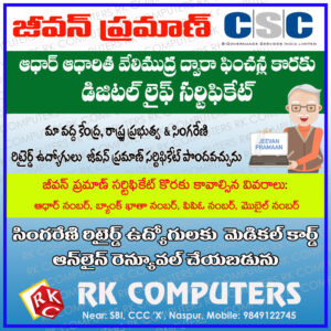 సింగరేణి రిటైర్డ్ కార్మికులకు (ప్రతి సంవత్సరం నవంబర్ నెలలో రెన్యువల్ చేయాల్సిన) లైఫ్ సర్టిఫికెట్ మరియు హెల్త్ కార్డు రెన్యువల్ సౌకర్యం కలదు.