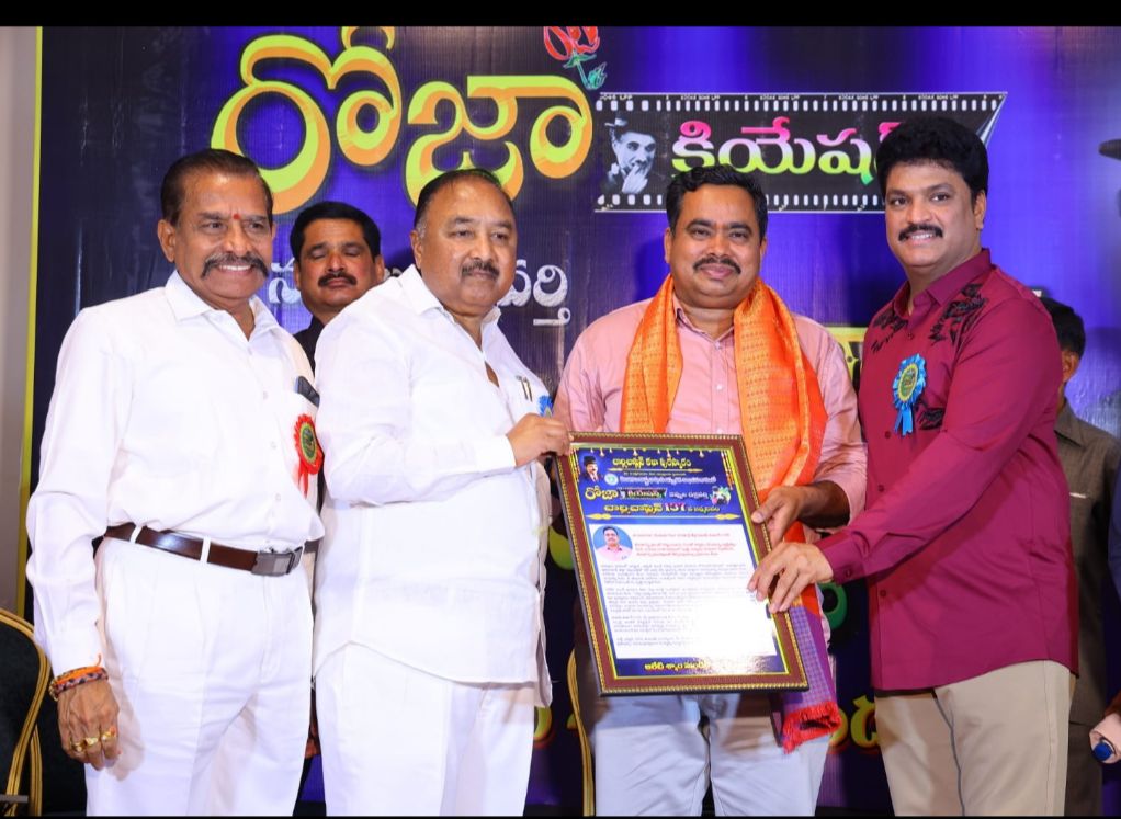 మంచిర్యాల, ఆర్.కె న్యూస్: హైదరాబాద్లోని రవీంద్రభారతి వేదికగా గురువారం రాత్రి మీడియా టుడే మంచిర్యాల జిల్లా ప్రతినిధి తేళ్ల విజయ్ కుమార్ ‘జర్నలిస్ట్ సేవా పురస్కారాన్ని’ అందుకున్నారు. తెలంగాణ రాష్ట్ర భాషా సాంస్కృతిక శాఖ సహకారంతో వరంగల్ రోజా క్రియేషన్స్ నిర్వహించిన చార్లీ చాప్లిన్ 137వ జన్మదిన వేడుకల్లో భాగంగా ఈ అవార్డును ప్రదానం చేశారు. వివిధ రంగాల్లో విశిష్ట సేవలు అందించిన ప్రముఖులను ఈ సందర్భంగా సన్మానించారు. శాసనమండలి వైస్ చైర్మన్ బండ ప్రకాష్ ఈ కార్యక్రమానికి ముఖ్య అతిథిగా హాజరయ్యారు. రోజా క్రియేషన్స్ అధినేత ఆలేటి శ్యాంసుందర్, నటుడు శివారెడ్డి, జబర్దస్త్ ఫేమ్ రాకేష్, సుజాత ఈ కార్యక్రమంలో పాల్గొన్నారు. గత 25 ఏళ్లుగా చార్లీ చాప్లిన్ జయంతి ఉత్సవాలను నిర్వహిస్తూ కళాకారులకు, ముఖ్యంగా హాస్య నటులకు పెద్దపీట వేస్తున్నట్లు శ్యాంసుందర్ తెలిపారు. సన్మానం అందుకున్న విజయ్ కుమార్ కళారంగంలో 38 ఏళ్లుగా, జర్నలిజంలో 15 ఏళ్లుగా విశేష సేవలు అందిస్తున్నారని ఆయన కొనియాడారు. కళాకారుల ఎదుగుదలకు రోజా క్రియేషన్స్ అందిస్తున్న ప్రోత్సాహం మరువలేనిదని జబర్దస్త్ రాకేష్ పేర్కొన్నారు. సంస్థ అందించిన సహకారమే తనను ఈ స్థాయిలో నిలబెట్టిందని తెలిపారు. ఈ వేడుకల్లో రాష్ట్రంలోని వివిధ ప్రాంతాల నుంచి వచ్చిన కవులు, కళాకారులు, రచయితలు పాల్గొన్నారు. సీనియర్ మైమ్ కళాకారులు కళాధర్, మధు తదితరులు హాజరై ప్రదర్శనలు ఇచ్చారు. ప్రతిభావంతులను గుర్తించి ప్రోత్సహించడం అభినందనీయమని అతిథులు పేర్కొన్నారు.