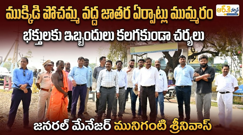 నస్పూర్, ఆర్.కె న్యూస్: స్థానిక ముక్కిడి పోచమ్మ ఆలయ ఆవరణలో సింగరేణి యాజమాన్యం నిర్వహిస్తున్న సమ్మక్క–సారలమ్మ జాతర ఏర్పాట్లను ఏరియా జనరల్ మేనేజర్ మునిగంటి శ్రీనివాస్ సోమవారం క్షేత్రస్థాయిలో పరిశీలించారు. వేలాదిగా తరలివచ్చే భక్తులకు ఎటువంటి అసౌకర్యం కలగకుండా అన్ని మౌలిక సదుపాయాలు కల్పించాలని అధికారులను ఆదేశించారు. తాగునీటి సరఫరా, నిరంతర విద్యుత్ ఉండేలా చూడాలని స్పష్టం చేశారు. పారిశుధ్య నిర్వహణ కోసం ప్రత్యేక బృందాలను ఏర్పాటు చేసి, ఆలయ పరిసరాలను నిరంతరం శుభ్రంగా ఉంచాలని సూచించారు. భక్తుల సౌకర్యార్థం తాత్కాలిక మరుగుదొడ్లు, నీటి ట్యాంకర్లు అందుబాటులో ఉంచాలని పేర్కొన్నారు. అత్యవసర వైద్యం కోసం ప్రథమ చికిత్స కేంద్రాలు, అంబులెన్స్ సదుపాయం సిద్ధం చేయాలని అధికారులకు తెలిపారు. భద్రత పరంగా పోలీసు శాఖతో సమన్వయం చేసుకుంటూ ట్రాఫిక్ నియంత్రణకు చర్యలు తీసుకోవాలని దిశానిర్దేశం చేశారు. సింగరేణి కార్మికులు, స్థానిక ప్రజల సహకారంతో జాతరను ప్రశాంతంగా నిర్వహించేందుకు అన్ని విభాగాలు సమిష్టిగా పనిచేయాలని పిలుపునిచ్చారు. ఈ కార్యక్రమంలో ఎస్వోటు జీఎం ఎన్. సత్యనారాయణ, డీజీఎంలు రవీందర్, ఎం. రాజేష్, సెక్యూరిటీ అధికారి జక్కా రెడ్డి, సీనియర్ పీవో ఎస్. సురేందర్ తదితర అధికారులు పాల్గొన్నారు.